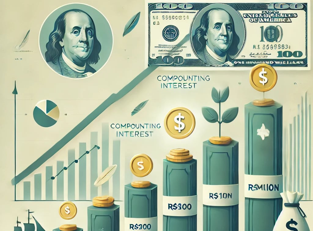 Franklin foi um dos primeiros a destacar os benefícios dos juros compostos. Albert Einstein, anos depois, os chamou de "a oitava maravilha do mundo". O segredo? Começar cedo e manter consistência.